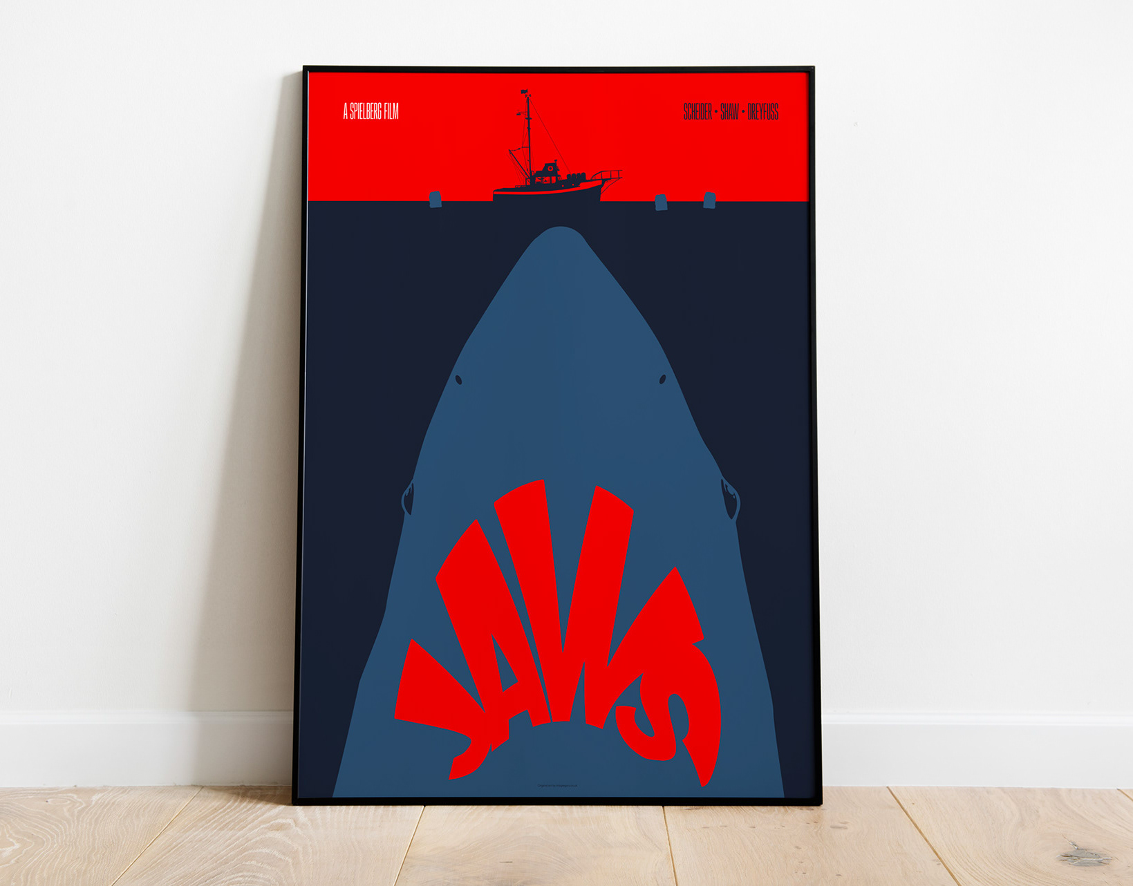 1975 was a fantastic year for film and there's no better way to remember iconic movies such as Steven Spielberg's JAWS starring Roy Scheider, Robert Shaw and Richard Dreyfuss, than some amazing fan art you can hang proudly on any office, bedroom or man cave. This artwork is based on the original classic artwork but finished with clean vector lines and a new colour scheme.
